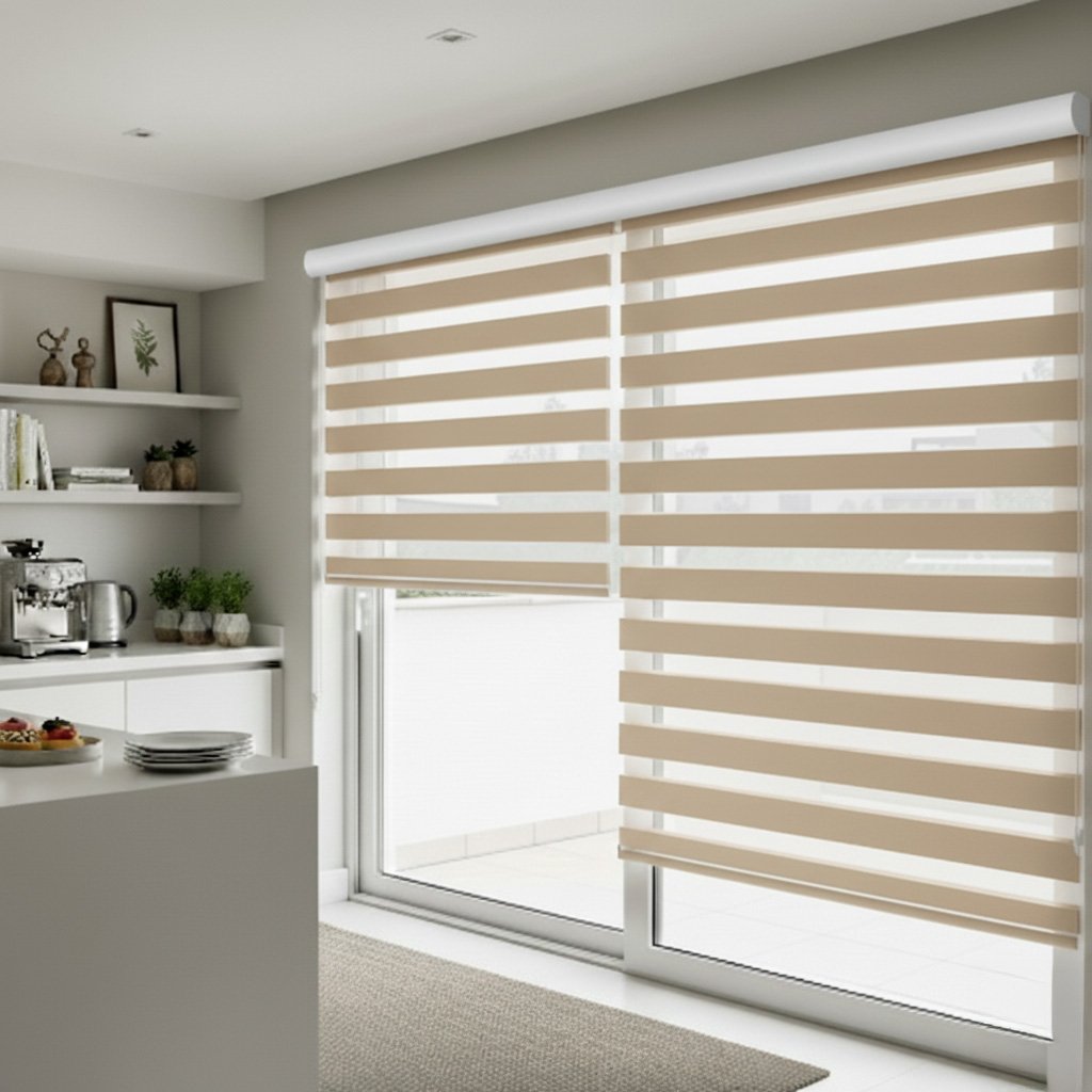 A Persiana Evolux Rolô Zebra combina funcionalidade, leveza e sofisticação em um único elemento. Suas faixas horizontais intercaladas, opacas e translúcidas, criam um efeito suave de luz e sombra que muda ao longo do dia, permitindo ajustar a luminosidade com precisão, preservando a privacidade sem abrir mão da luz natural.